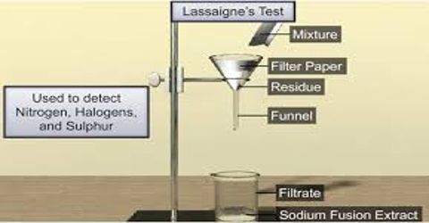 Em um desses ensaios, fazia-se a fusão do material, com um fragmento pequeno de sódio metálico, e isso mineralizava a amostra. Por exemplo, se o composto orgânico fosse um iodeto de alquila, formava-se iodeto de sódio, que podia ser detectado quimicamente por reação com nitrato de prata.