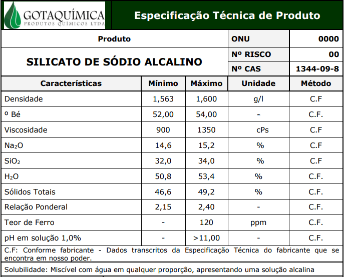 Parte-se de Silicato de Sódio Alcalino, líquido em solução, comercial.